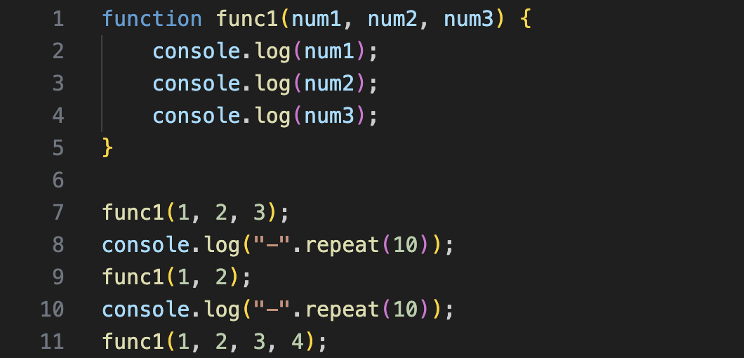 JS 에서는 매개변수를 더 적게 주거나 많이 줘도 에러가 나지 않는다. 그래서 실제 개발 환경에서는 위험할 수 있다 !