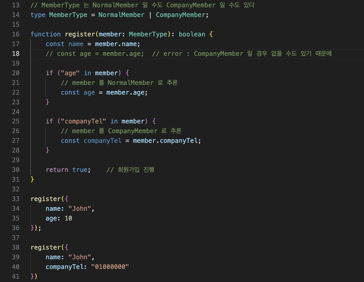 → 개발할 때 편리하니까? 주요한 목적은 타이핑할 때 에러를 바로 수정할 수 있도록 하기 위해서! 타입이 자동 추론 되니까!