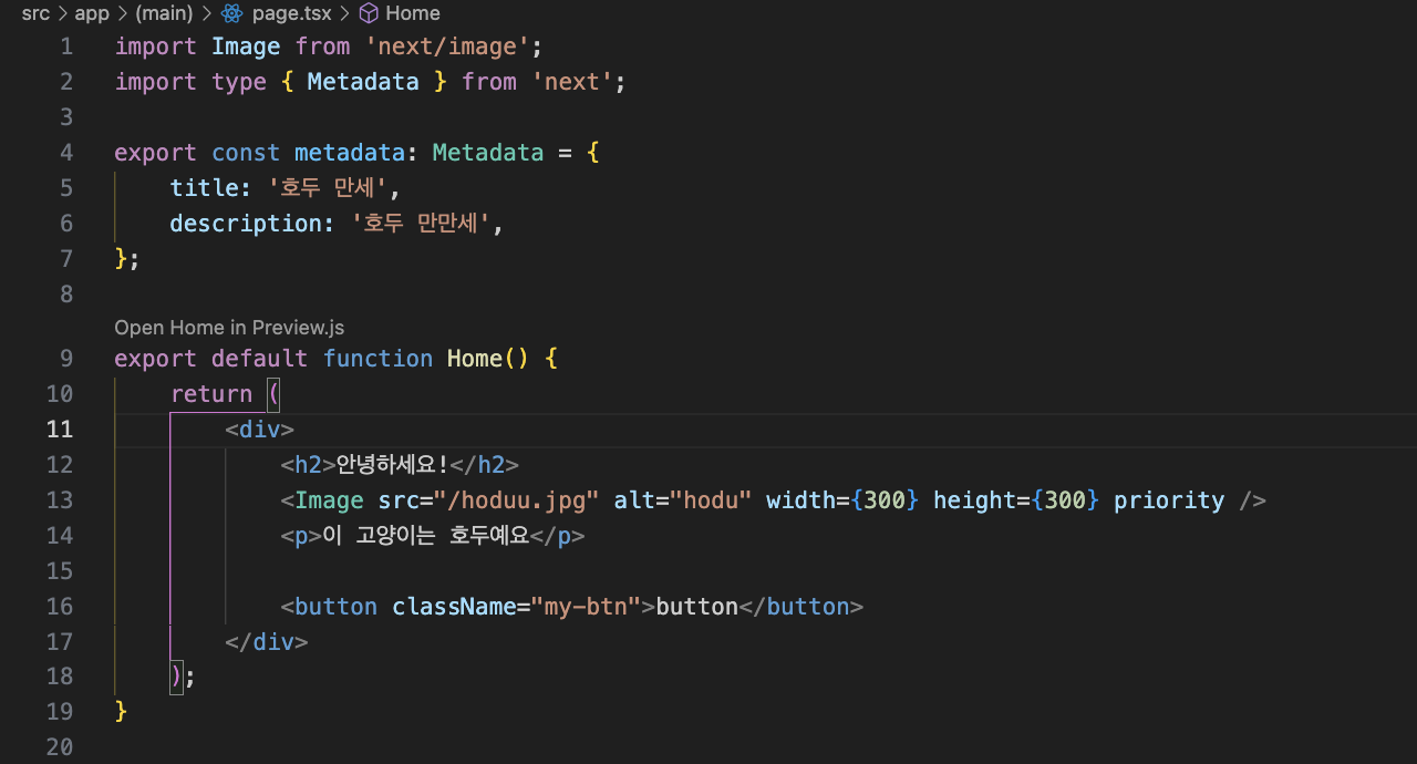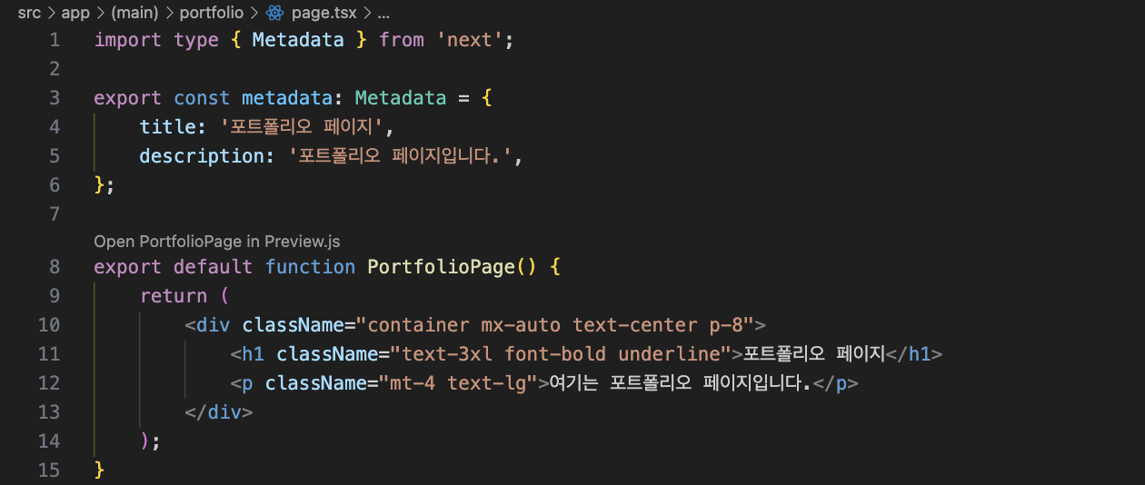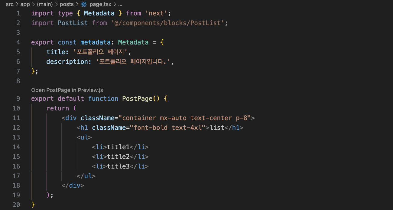 페이지의 제목은 위의 meta 에서 바꿀 수도 있고, page.tsx 에서 바꿀 수도 있다.