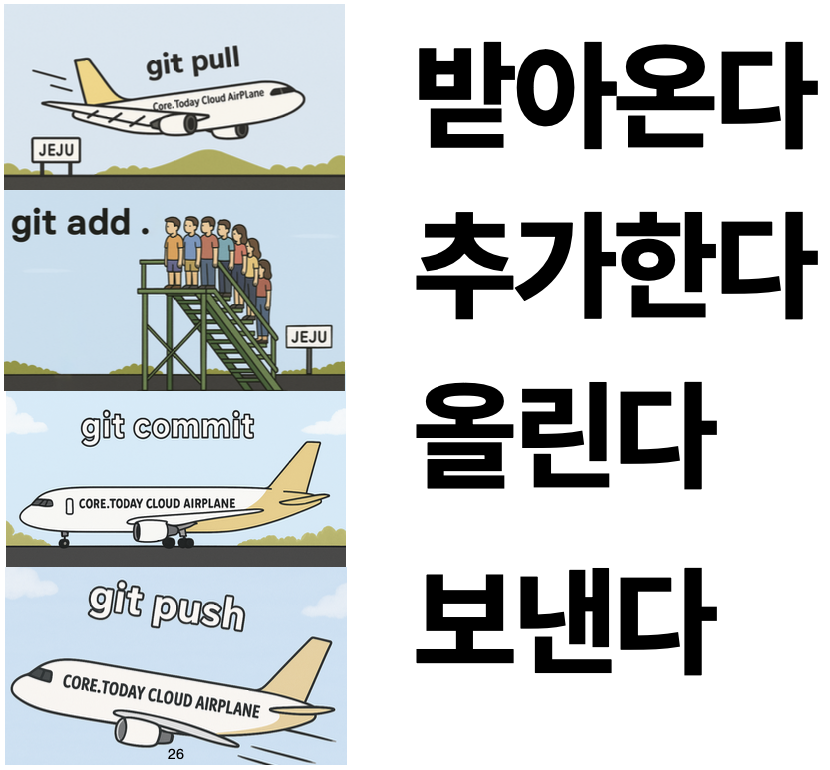 - git push : 간단히 push 할 수 있지만, 원격저장소에 해당 브랜치가 없는 경우 git push -u origin 브랜치명 을 실행해야 이후에 간단히 push 가능